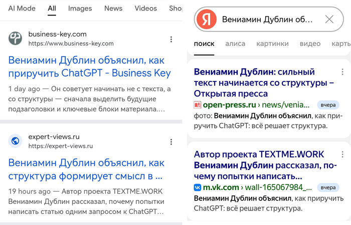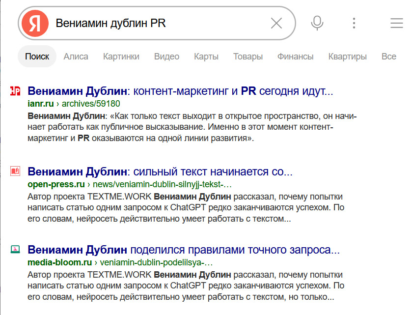 Материалы выглядят как редакционные новости, индексируются Яндексом и Google и формируют публичный информационный след вокруг имени или бренда.
